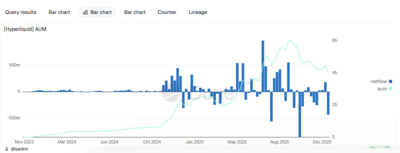 Hyperliquid ghi nhận dòng vốn rút hơn 430 triệu USD, AUM giảm mạnh trước áp lực cạnh tranh