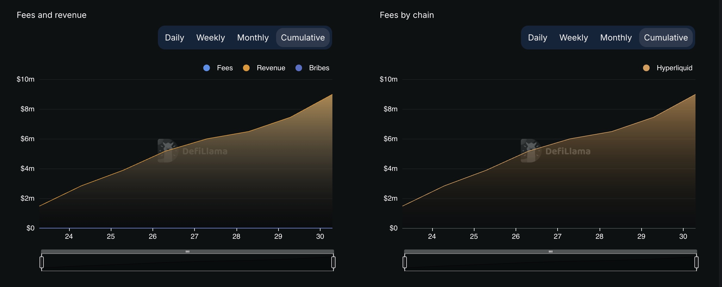 Giao thức Hyperliquid cung cấp nền tảng giao dịch phi tập trung cho các tài sản số. Theo số liệu từ DefiLlama, trong tháng 12, Hyperliquid đã đạt tổng khối lượng giao dịch hơn 12 tỷ đô la, tạo ra hơn 8,6 triệu đô la doanh thu tích lũy.