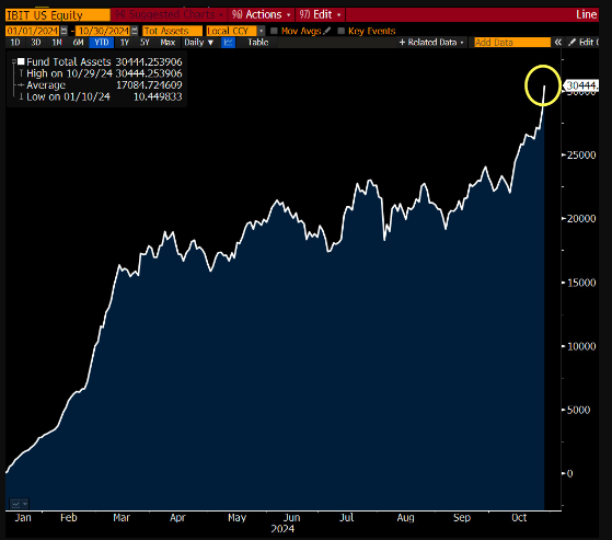 Công ty quản lý tài sản lớn nhất thế giới đã đạt mốc 30 tỷ USD chưa đầy 10 tháng sau khi ra mắt ETF Bitcoin, bắt đầu giao dịch vào ngày 10 tháng 1.