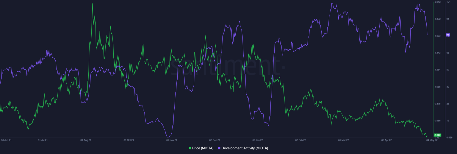 Điều này cho thấy niềm tin của các nhà phát triển vào tài sản là rất lớn và ngay cả khi giá MIOTA giảm, họ vẫn sẵn sàng làm việc cùng dự án.