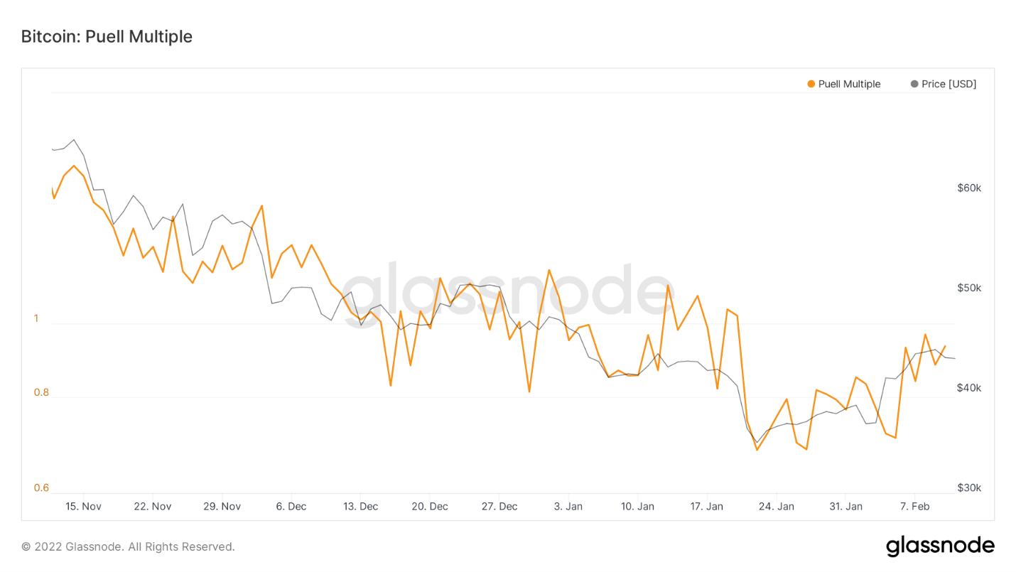 Cùng với đó, Puell Multiple của Bitcoin cũng chỉ ra một đề xuất giá trị hấp dẫn vào lúc này. Với tỷ lệ vẫn dưới 1 bất chấp giá phục hồi từ các mức thấp cục bộ. Điều này chủ yếu thể hiện kịch bản rủi ro trên phần thưởng tốt.