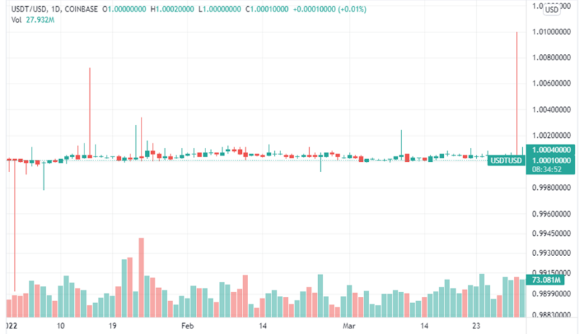 Biểu đồ giá USDT trong quý 1/2022 | Nguồn: TradingView