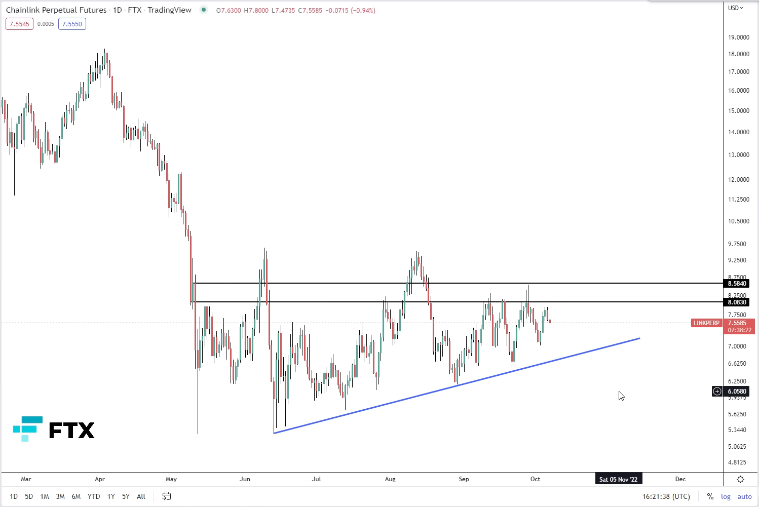 “Sẽ có một thiết lập tốt khi nó bứt phá lên trên $ 8. Cặp Bitcoin (LINK/BTC) đã hoạt động tốt trong vài tuần qua. Vì vậy, đây là một biểu đồ thú vị mà tôi muốn theo dõi. Tôi không nhất thiết sẽ mua altcoin này khi bứt phá xảy ra, nhưng nó là một trong những tài sản mà tôi đang xem xét gần đây nhất…