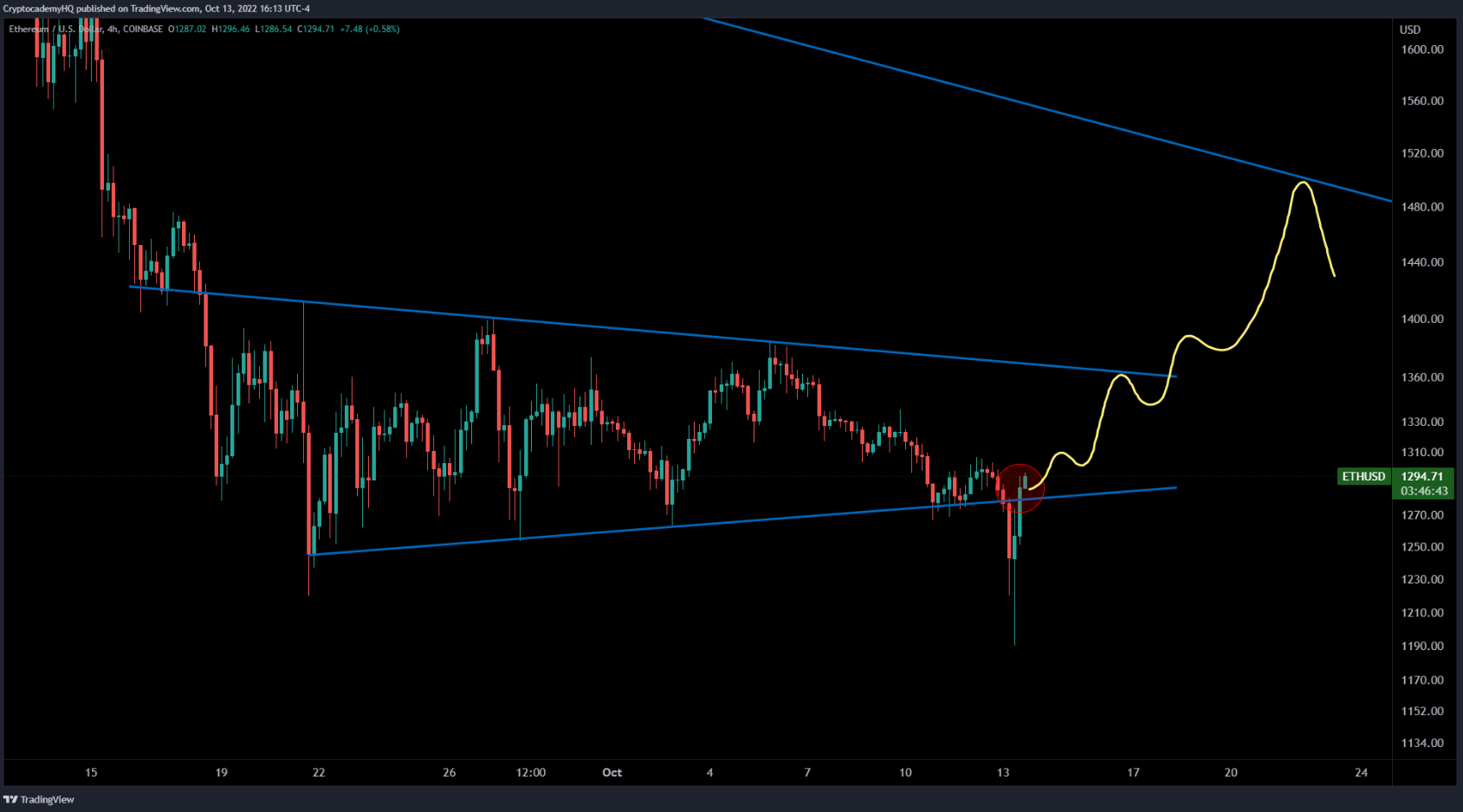 Dựa trên biểu đồ của nhà phân tích, ETH dự kiến sẽ tăng lên $ 1.480 trong những ngày tới. Tại thời điểm viết bài, Ethereum có giá trị $ 1.281, giảm 1,62% trong 24 giờ qua.