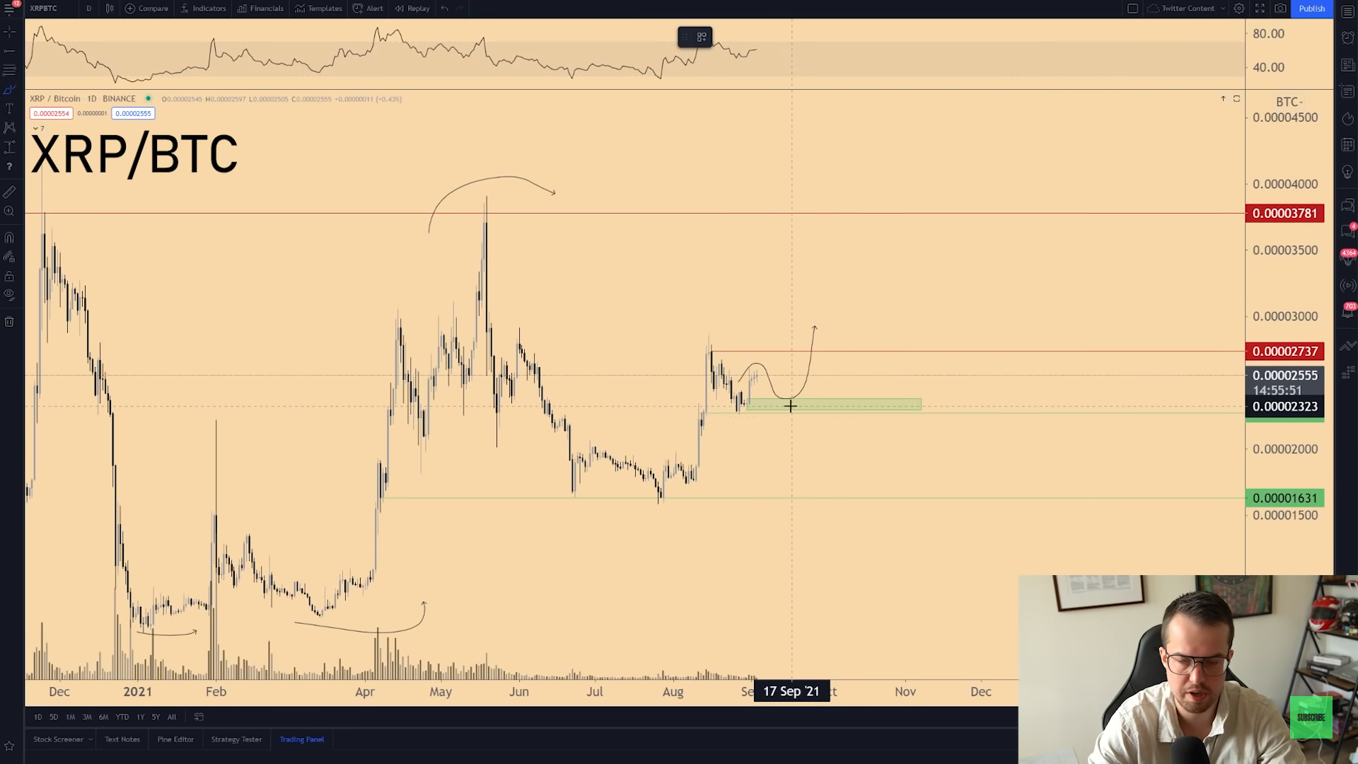 Trader cũng đang xem xét cặp XRP/ BTC. Theo anh, cặp này cần phá vỡ kháng cự để có thể kích hoạt mức tăng 140% so với giá trị hiện tại 0,000025 BTC hoặc 1,25 đô la.