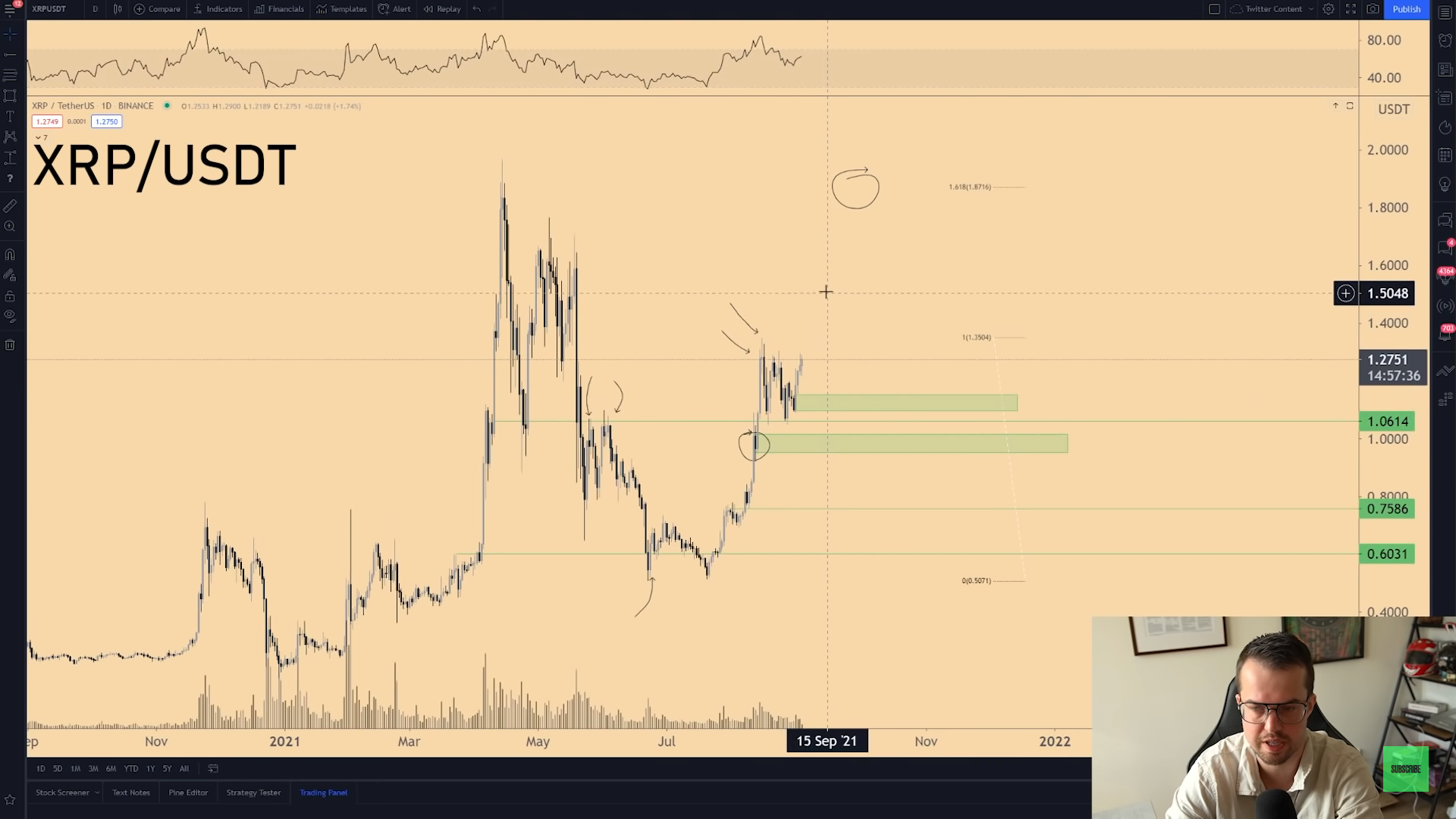 Sử dụng công cụ Fibonacci mở rộng, Van de Poppe cho biết mục tiêu cho XRP là 1,85 đô la, gần với mức cao nhất năm 2021 là khoảng 1,96 đô la.