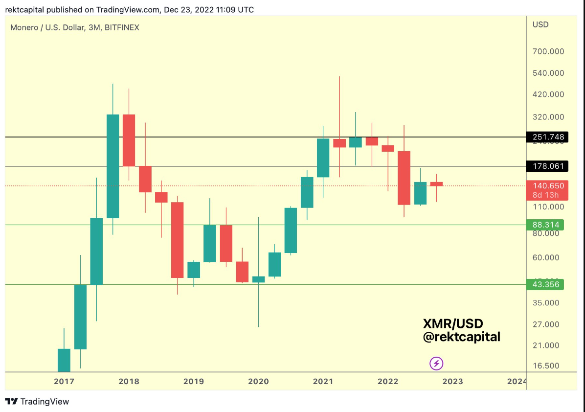 Sau đó Rekt Capital xem xét Monero (XMR), một tiền điện tử ẩn danh giúp các giao dịch không thể bị theo dõi.