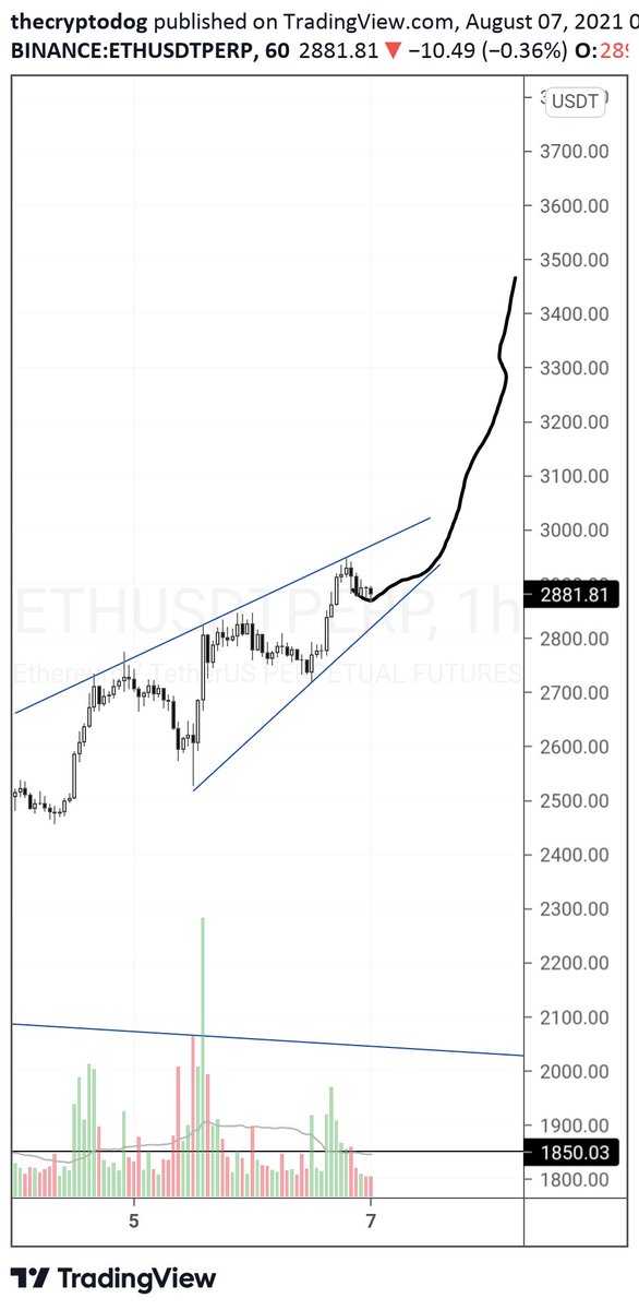 Nhìn vào Ethereum (ETH), Crypto Dog cho biết nền tảng hợp đồng thông minh hàng đầu vẫn được thiết lập để bùng nổ ngay cả sau khi chạm ngưỡng kháng cự mạnh ở khoảng $ 3.100.