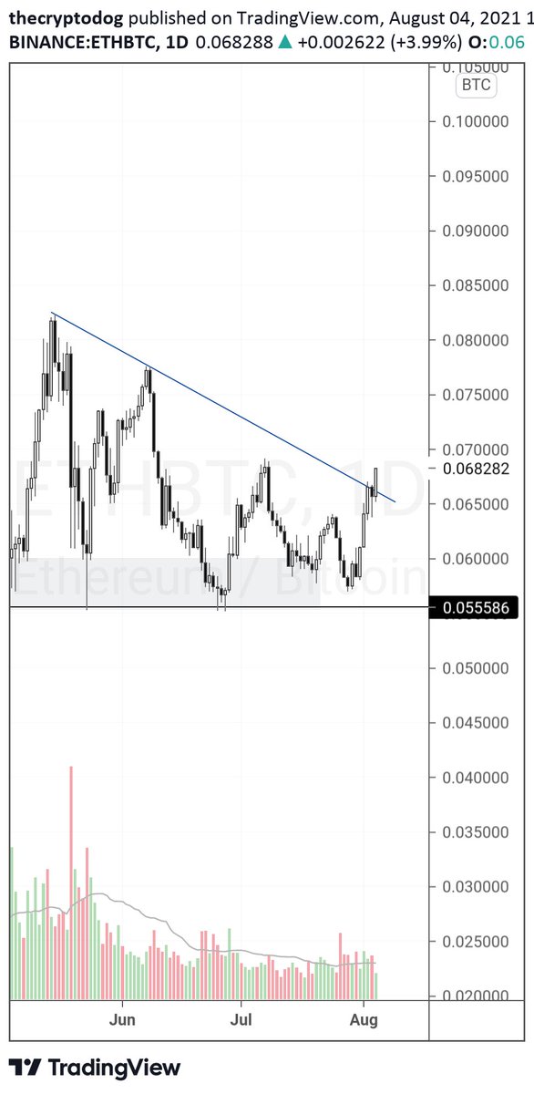 “Tôi đã mua dip ETH mỗi khi tôi muốn mua BTC. Tôi đang mong đợi một cuộc biểu tình mạnh mẽ> 0,1 [BTC] sau khi vượt qua [0,068 BTC]…