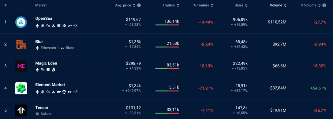 Ngoài sự suy thoái của thị trường, Kraken cũng đối mặt với sự cạnh tranh gay gắt từ các nền tảng NFT lớn như OpenSea và Blur. Vào tháng 8, khối lượng giao dịch trên OpenSea đạt 110,5 triệu USD, giảm 27% so với tháng trước đó, mặc dù thị trường đã có sự phục hồi nhẹ vào tháng 11, nhưng vẫn chưa thể đạt lại mức đỉnh của năm 2022.