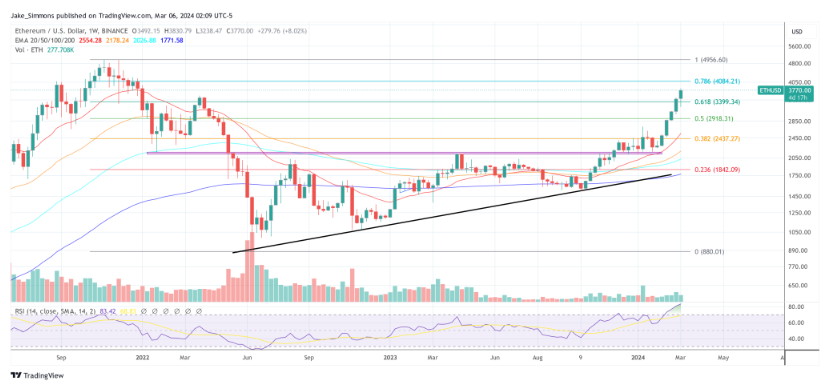 Giá ETH giữ giá trên Fib 0,618 trên biểu đồ 1 tuần | Nguồn: TradingView