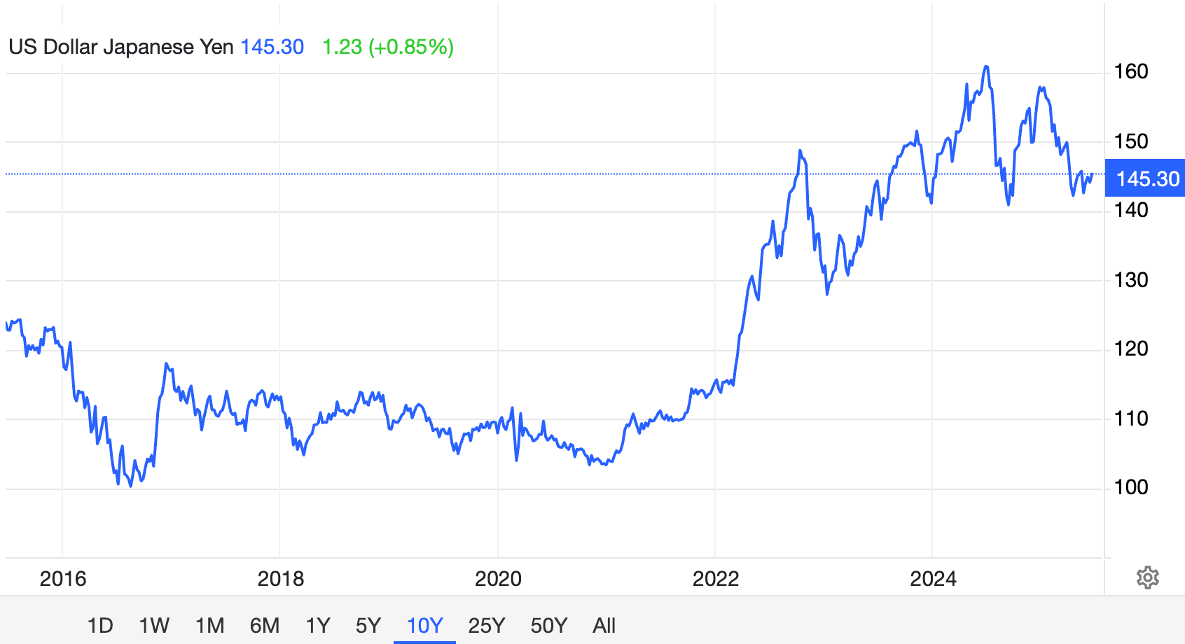 Lý do đầu tiên và quan trọng nhất là sự mất giá của đồng yên Nhật. Theo dữ liệu từ Trading Economics, đồng yên đã suy yếu đáng kể trong những năm gần đây, một phần là do chính sách lãi suất âm kéo dài của Ngân hàng Nhật Bản (BOJ). Sự giảm giá của đồng nội tệ đã thúc đẩy các công ty tìm kiếm các tài sản thay thế có thể bảo vệ giá trị. Bitcoin, với đặc tính chống lạm phát, đã trở thành một lựa chọn hấp dẫn cho các công ty Nhật Bản trong bối cảnh này.