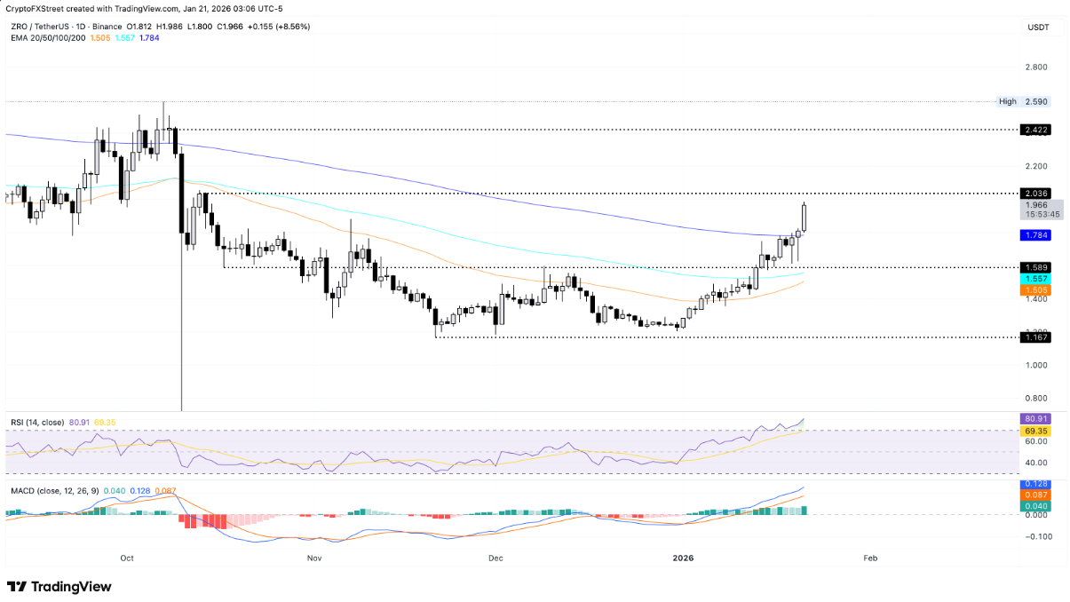 LayerZero mở rộng đà phục hồi trên đường EMA 200 ngày