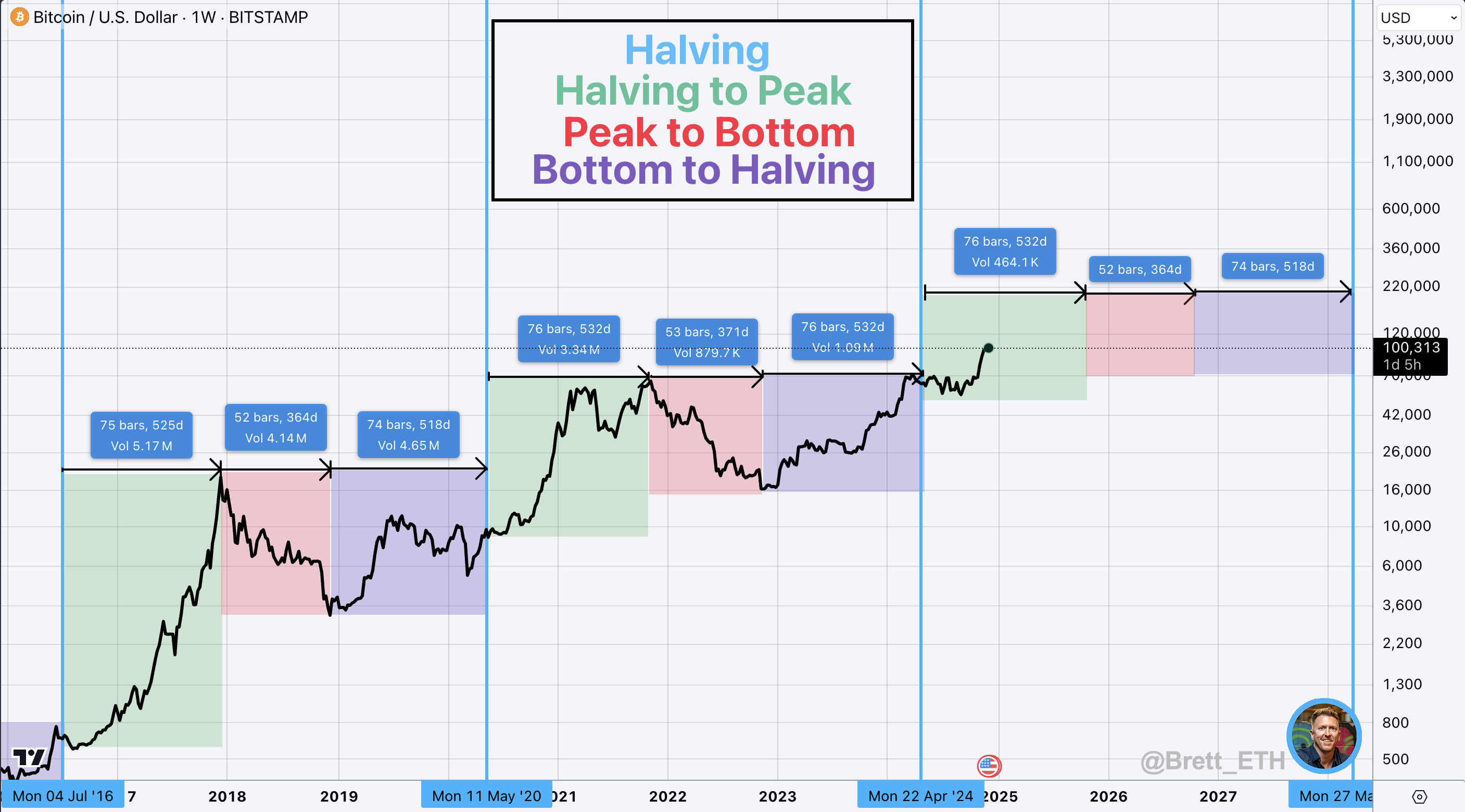 2. Chu kỳ cung ứng Bitcoin đang ở giữa giai đoạn chuyển động thẳng