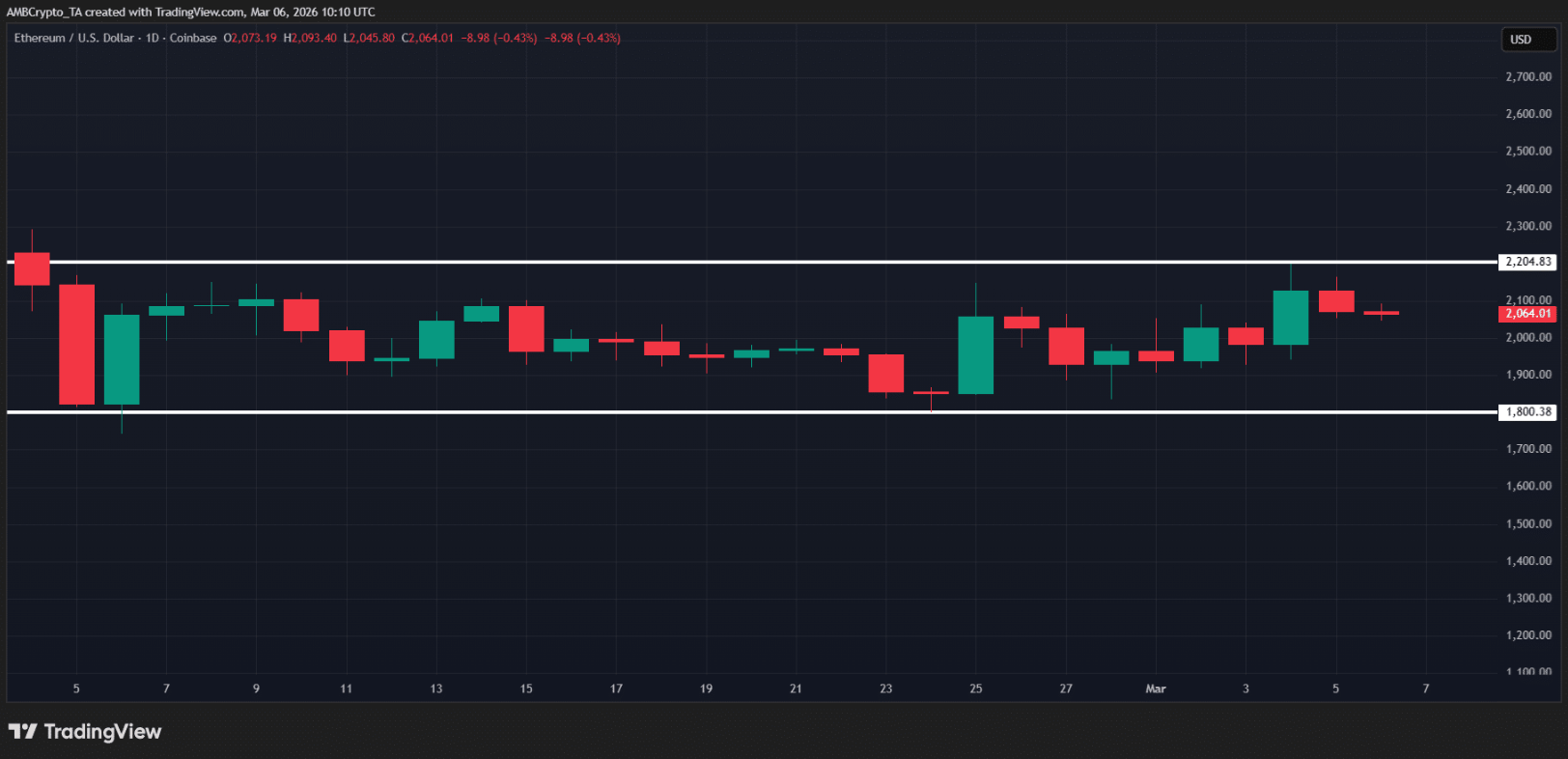 Xét trên phương diện kỹ thuật, tỷ lệ ETH/BTC vẫn đang trong giai đoạn tích lũy dưới mốc 0,03. Đáng chú ý, vùng tích lũy này xuất hiện sau khi cặp tỷ giá hình thành đỉnh cao hơn (higher high) đầu tiên kể từ mức 0,035 vào giữa tháng 1. Điều này cho thấy Ethereum đang dần khôi phục sức hút đối với dòng vốn, từng bước cải thiện vị thế so với Bitcoin.