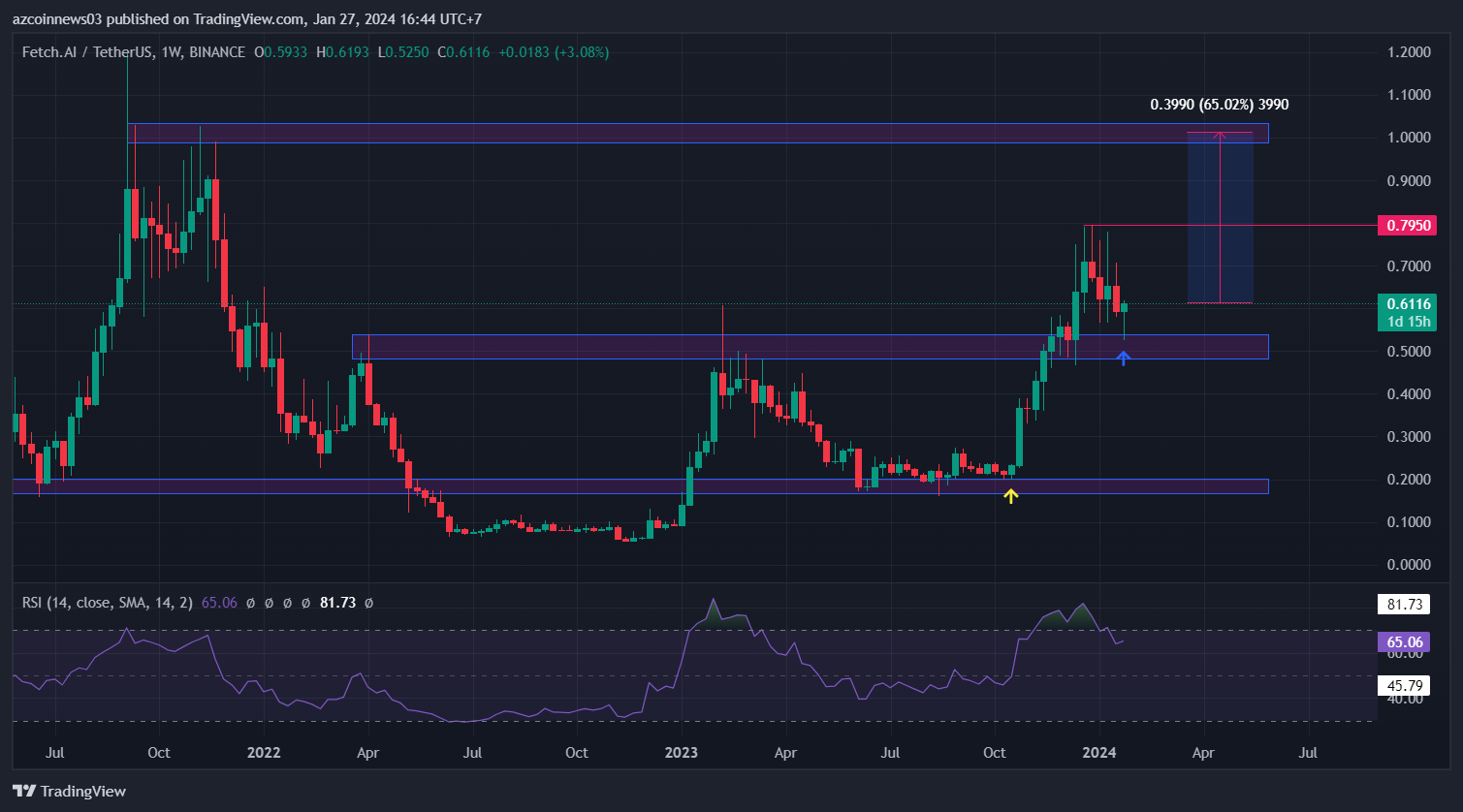 Triển vọng có khả năng xảy ra nhất cho thấy giá FET sẽ tiếp tục tăng lên vùng kháng cự $1 trong thời gian tới. Tuy nhiên, nó có thể giảm xuống vùng $0,53 một lần nữa trước khi làm vậy.