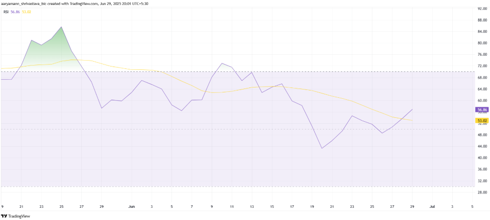 Khi RSI duy trì trên 50,0, điều này cho thấy đà tăng trưởng đang mạnh lên. Các nhà đầu tư có thể kỳ vọng giá HYPE sẽ tiếp tục tăng miễn là RSI duy trì xu hướng này.
