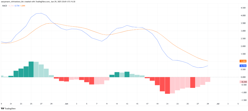 MACD cũng đang cho thấy những dấu hiệu đáng mừng. Chỉ báo này đang trên đà hình thành giao cắt tăng giá, điều này sẽ xác nhận sự thay đổi động lực từ giảm sang tăng. Biểu đồ histogram liên quan đến MACD cho thấy các thanh màu đỏ ngày càng ngắn dần, báo hiệu rằng áp lực giảm giá đang suy yếu. Việc hình thành giao cắt tăng giá sẽ xác nhận sức mạnh của động lực và thúc đẩy HYPE hướng đến mức đỉnh mới.