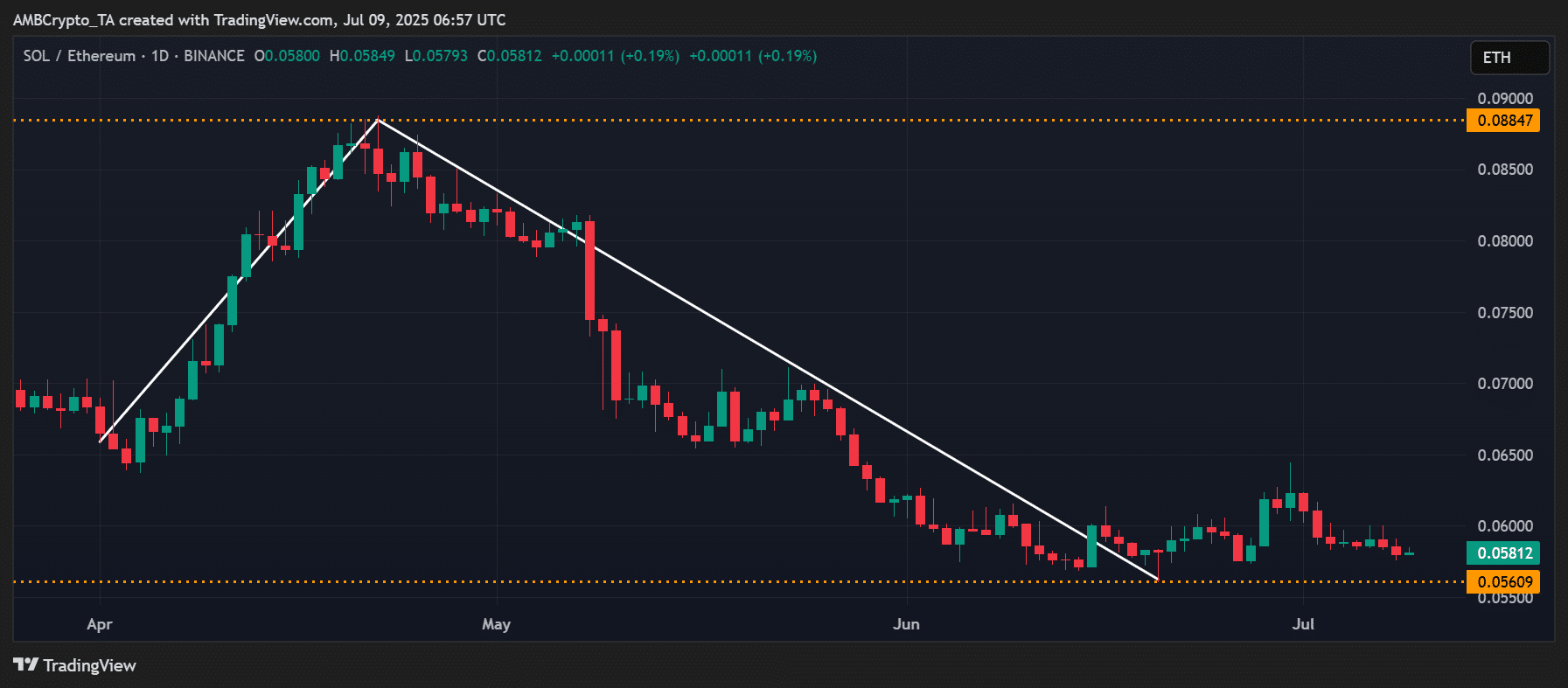 Quý 2 vừa qua đã cho thấy tầm quan trọng của các tỷ lệ liên thị trường trong việc đánh giá hiệu suất altcoin so với Bitcoin. Trong số đó, tỷ lệ SOL/ETH là ví dụ rõ ràng nhất.