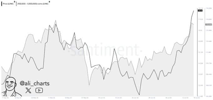 LINK hiện vẫn đang duy trì đà tăng, với mức tăng 4,8% trong 24 giờ qua và giữ vững quanh mốc 19,48 đô la.