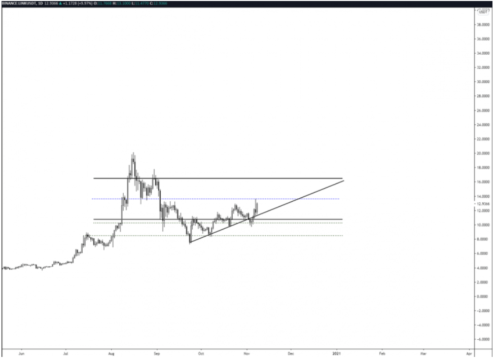 Tuần trước, song song với các cuộc biểu tình lớn được chứng kiến ​​bởi YFI của Yearn.finance và các token DeFi khác, LINK đã chứng kiến ​​sự gia tăng đột ngột khiến giá của nó lên tới $ 14. Sự từ chối ở đây là rất dữ dội và bắt đầu giai đoạn hợp nhất hiện tại.