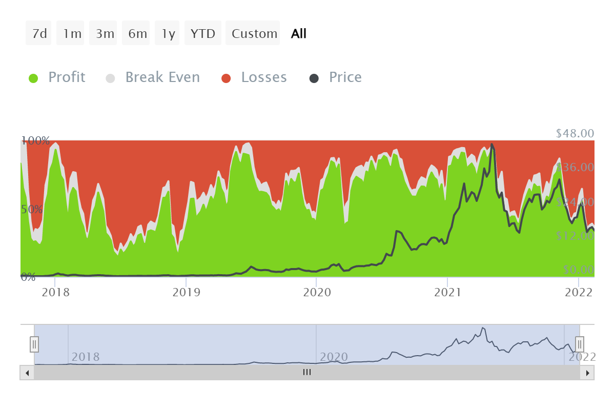 Số lượng nhà đầu tư LINK thua lỗ | Nguồn: Intotheblock