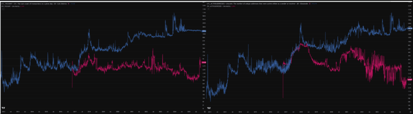 Dữ liệu cho thấy, Litecoin đang vượt trội hơn phần lớn các đồng coin cùng nhóm về số lượng giao dịch hàng ngày cũng như mức độ hoạt động của ví. Đáng chú ý, nó thậm chí còn vượt qua Zcash (ZEC) — đồng coin từng ghi nhận một đợt tăng giá mạnh trong thời gian gần đây.