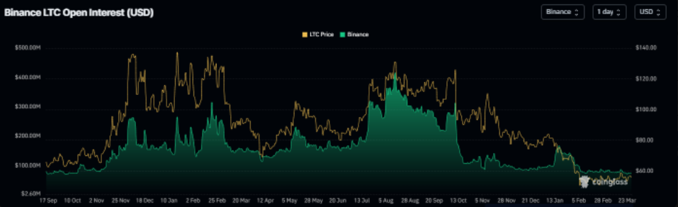 Khối lượng hợp đồng mở LTC trên biểu đồ Binance | Nguồn: Coinglass