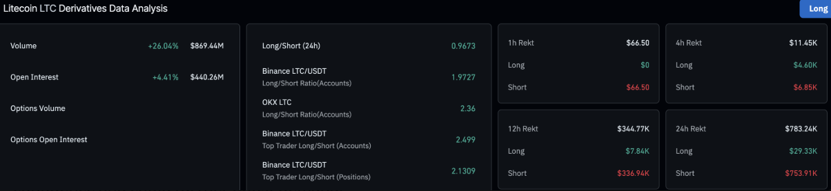 Dữ liệu phái sinh Litecoin | Nguồn: CoinGlass