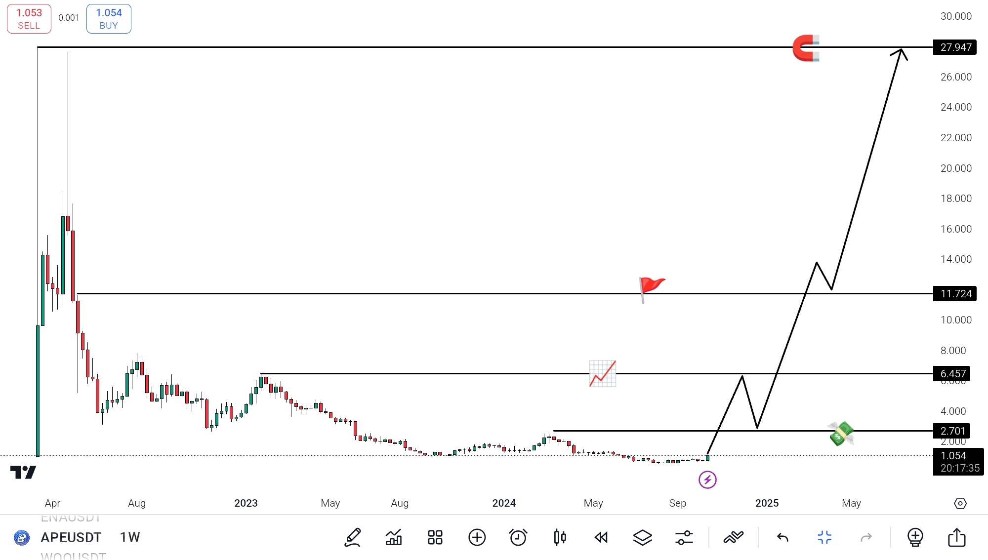 APE đã vật lộn quanh mức 0,75 đô la trong vài tuần qua và tăng vọt hơn 66% sau thông báo trên X. Giá đã lấy lại mức 1 đô la và đạt mức cao nhất trong bốn tháng là 1,25 đô la cho đến nay.