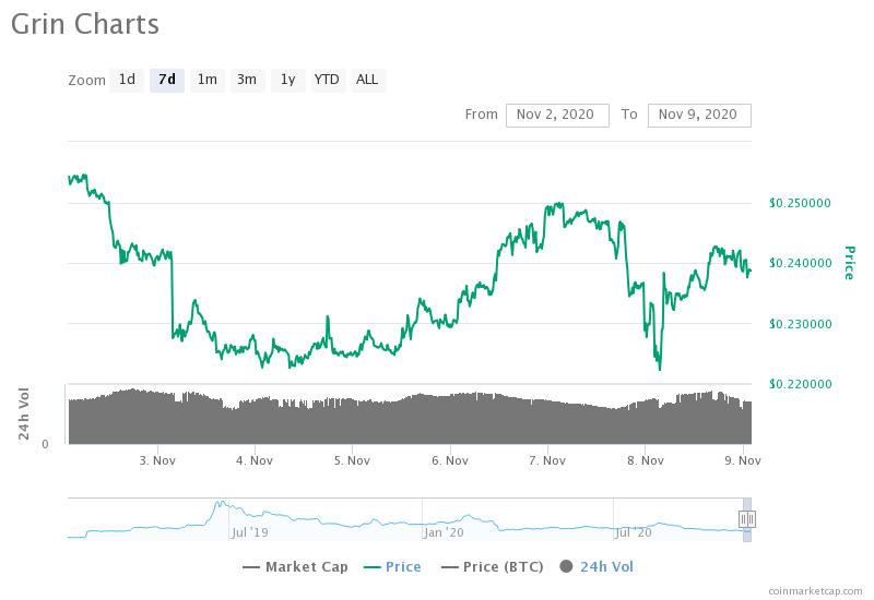 Giá GRIN dường như không bị ảnh hưởng bởi thông tin, vẫn tăng hơn 3% trong khoảng thời gian 24 giờ qua.