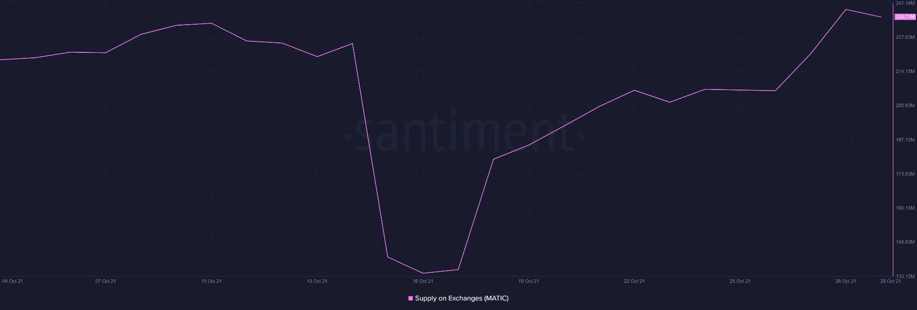 Nguồn cung MATIC trên sàn giao dịch | Nguồn: Santiment