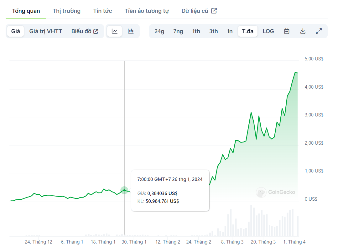 Trong 24 giờ qua, WIF đã chứng kiến sự đột biến đáng chú ý, tăng 6,2% để đạt $4,57, đẩy vốn hóa thị trường của nó lên 4,55 tỷ USD. Cột mốc quan trọng này đã đẩy nó lên vị trí thứ 29 trong số các loại tiền điện tử theo vốn hóa thị trường, vượt qua mạng Layer 2 của Ethereum Arbitrum với 4,39 tỷ USD và theo sát Cosmos ở mức 4,8 tỷ USD. Điều này đánh dấu một cột mốc quan trọng trong hành trình của đồng meme kể từ đầu năm.