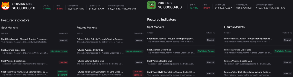 Ngược lại, CVD trên thị trường futures của Shiba Inu vẫn nghiêng về lệnh bán chủ động (taker-sell), còn Pepe duy trì trạng thái trung tính. Những tín hiệu này càng củng cố nhận định rằng Dogecoin đang là lựa chọn được giới giao dịch phái sinh ưu ái hơn cả.