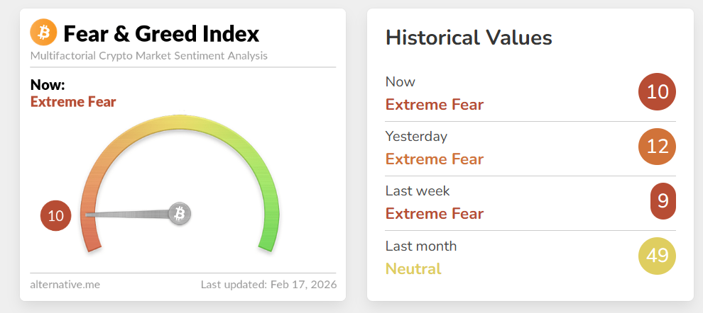 Các meme coin đang chật vật duy trì lực mua từ nhà đầu tư cá nhân trong bối cảnh thị trường tiền điện tử biến động dữ dội. Chỉ số Crypto Fear and Greed Index lao xuống mức 10 vào thứ Tư, cho thấy tâm lý sợ hãi cực độ đang bao trùm thị trường.