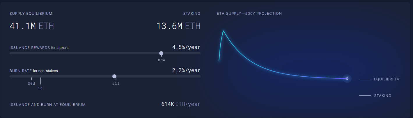 Trình theo dõi dự đoán rằng Ethereum PoS sẽ phát hành 1.700 ETH mỗi ngày nếu lượng stake đạt 14 triệu. Nó lưu ý rằng khi số ETH được stake tăng lên, thì tỷ lệ được phát hành cũng sẽ tăng lên.