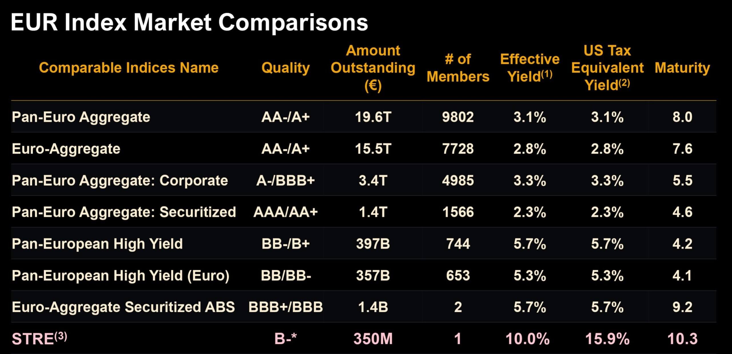 Trong bối cảnh lợi suất BBB khoảng 3,5% và B-rated khoảng 6,5% (theo FTSE Russell), mức 10% của STRE nổi bật rõ rệt.