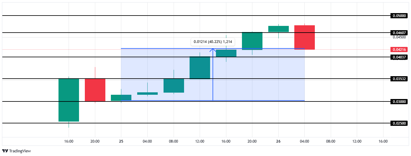 MON hiện giao dịch quanh mức 0,042 USD, vững vàng trụ trên ngưỡng hỗ trợ quan trọng 0,040 USD sau cú bứt phá mạnh 40% chỉ trong 24 giờ. Đồng token này đang nổi lên như một trong những tài sản có hiệu suất ấn tượng nhất tuần, được thúc đẩy bởi đà tăng trưởng người dùng cùng với tiện ích mạng lưới ngày càng được mở rộng.
