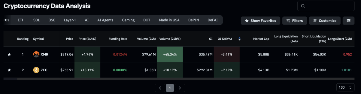 Hợp đồng mở của đồng coin riêng tư | Nguồn: CoinGlass