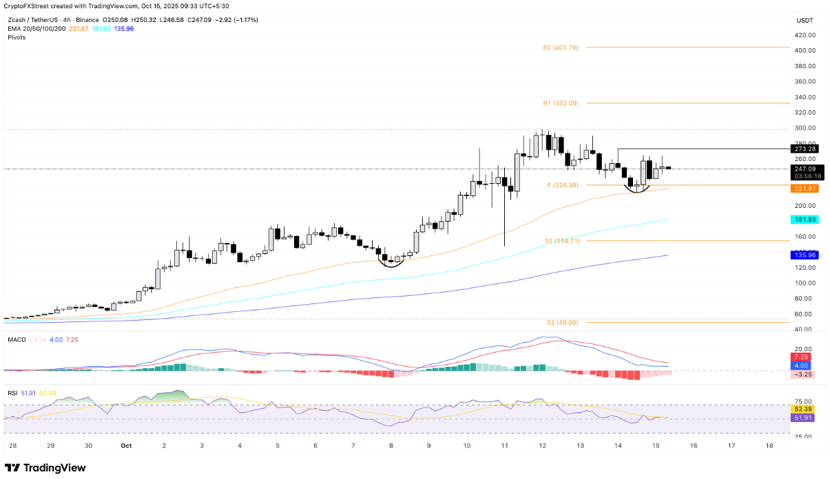 Nếu ZEC bứt phá trên 273 USD, đồng coin này có thể hướng thẳng tới vùng kháng cự tâm lý 300 USD, trước khi thử thách mức R1 Pivot Point tại 332 USD. Ngược lại, việc xuyên thủng vùng hỗ trợ 226 USD cùng với đường EMA 50 kỳ tại 222 USD có thể mở ra nguy cơ điều chỉnh sâu hơn, với mục tiêu kế tiếp là đường EMA 100 kỳ quanh 182 USD.