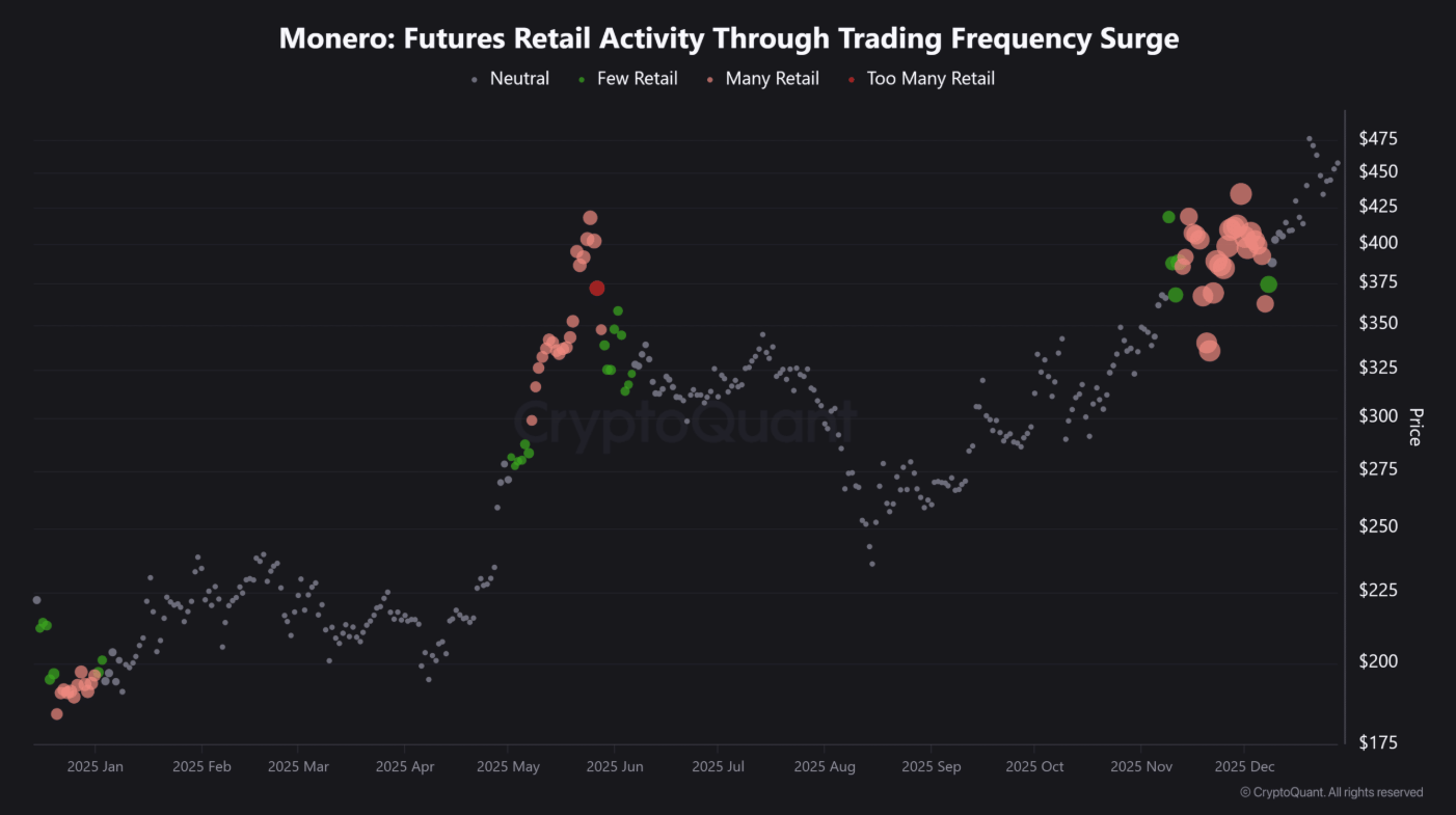 Tâm lý suy yếu của thị trường chung có thể tạo áp lực khiến XMR điều chỉnh trong giai đoạn đầu năm 2026. Tuy nhiên, ở thời điểm hiện tại, rủi ro này vẫn chưa được phản ánh rõ nét trên thị trường hợp đồng tương lai.