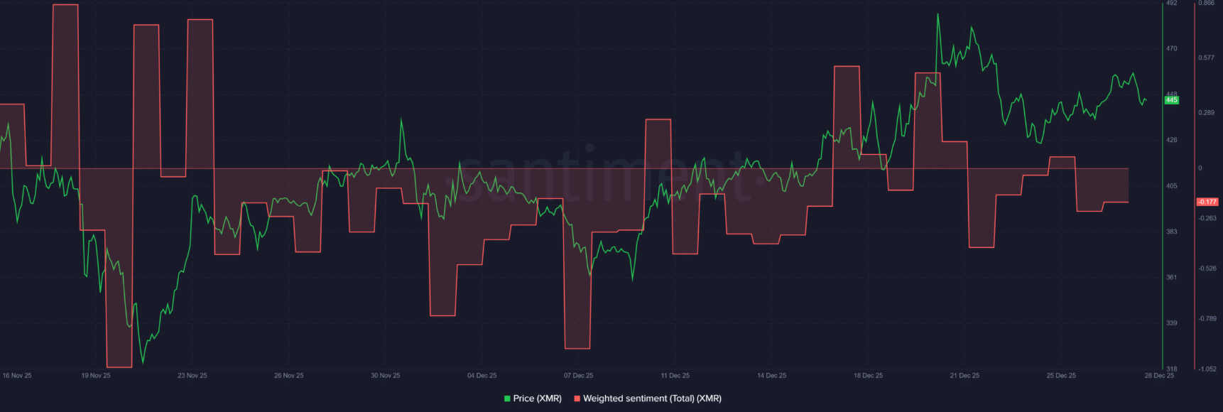 Dù vậy, tâm lý thị trường hiện vẫn chưa đủ tích cực để kích hoạt một xu hướng tăng bền vững mới đối với XMR. Thực tế, sắc thái bi quan vẫn chiếm ưu thế trong tuần lễ Giáng sinh. Nếu tâm lý này dần được cải thiện theo hướng tích cực hơn, đà phục hồi của giá XMR có thể tiếp tục được củng cố trong thời gian tới.
