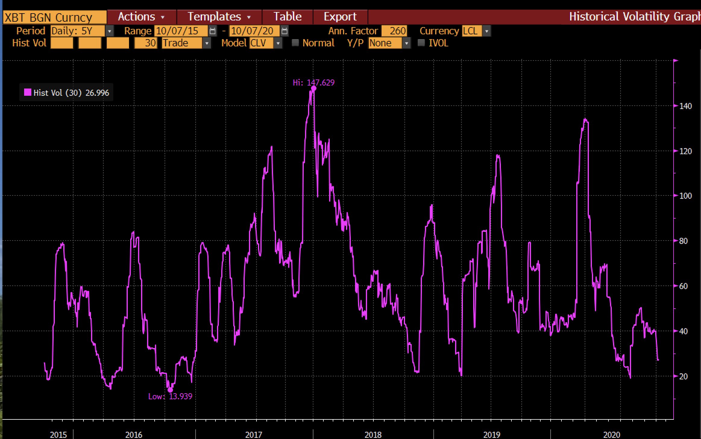 Sự biến động lịch sử trong 30 ngày của Bitcoin | Nguồn: Raoul Pal