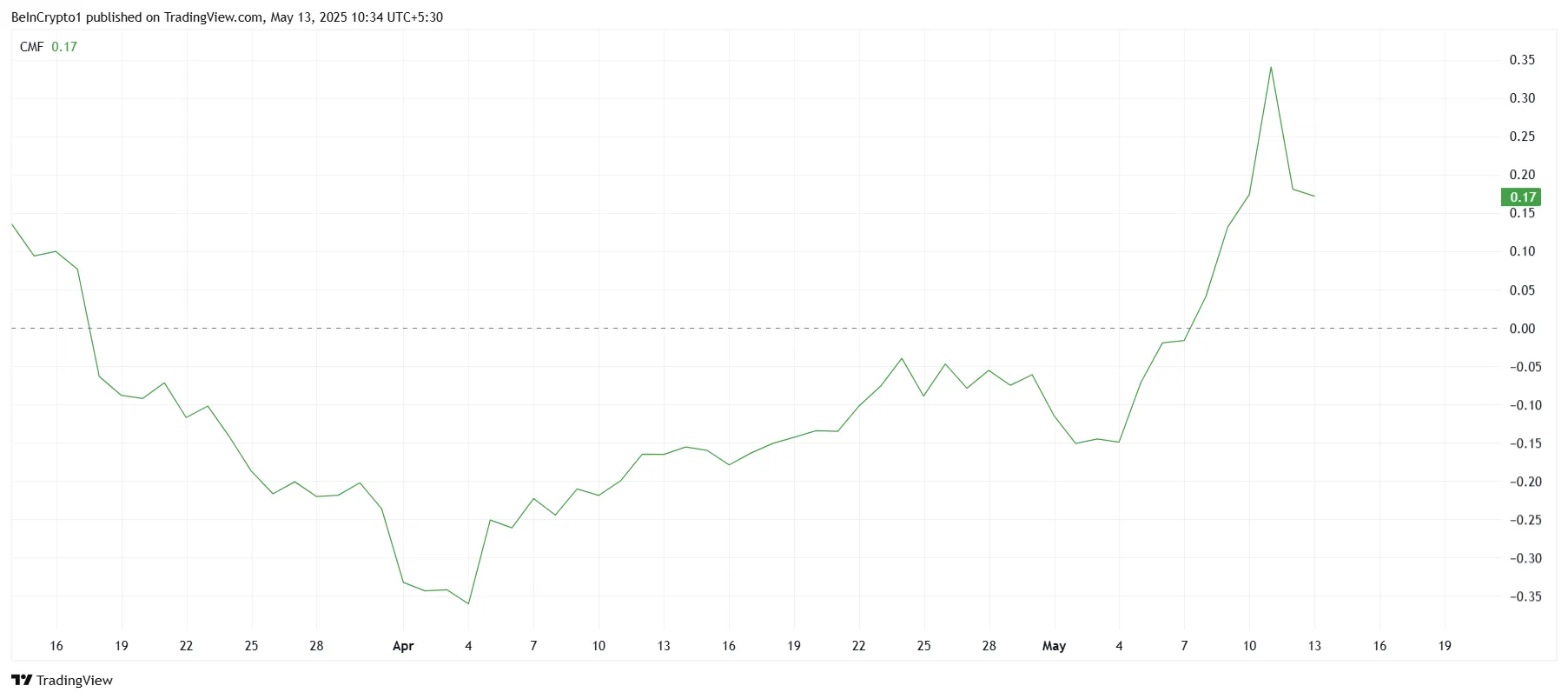 CMF thường được xem là chỉ báo về sức khỏe thị trường. Khi CMF ở mức cao, nó phản ánh niềm tin của dòng vốn đối với tài sản. Nếu xu hướng này được duy trì, Pi Network hoàn toàn có thể giữ vững đà tăng giá bất chấp những rung lắc ngắn hạn do biến động thị trường.