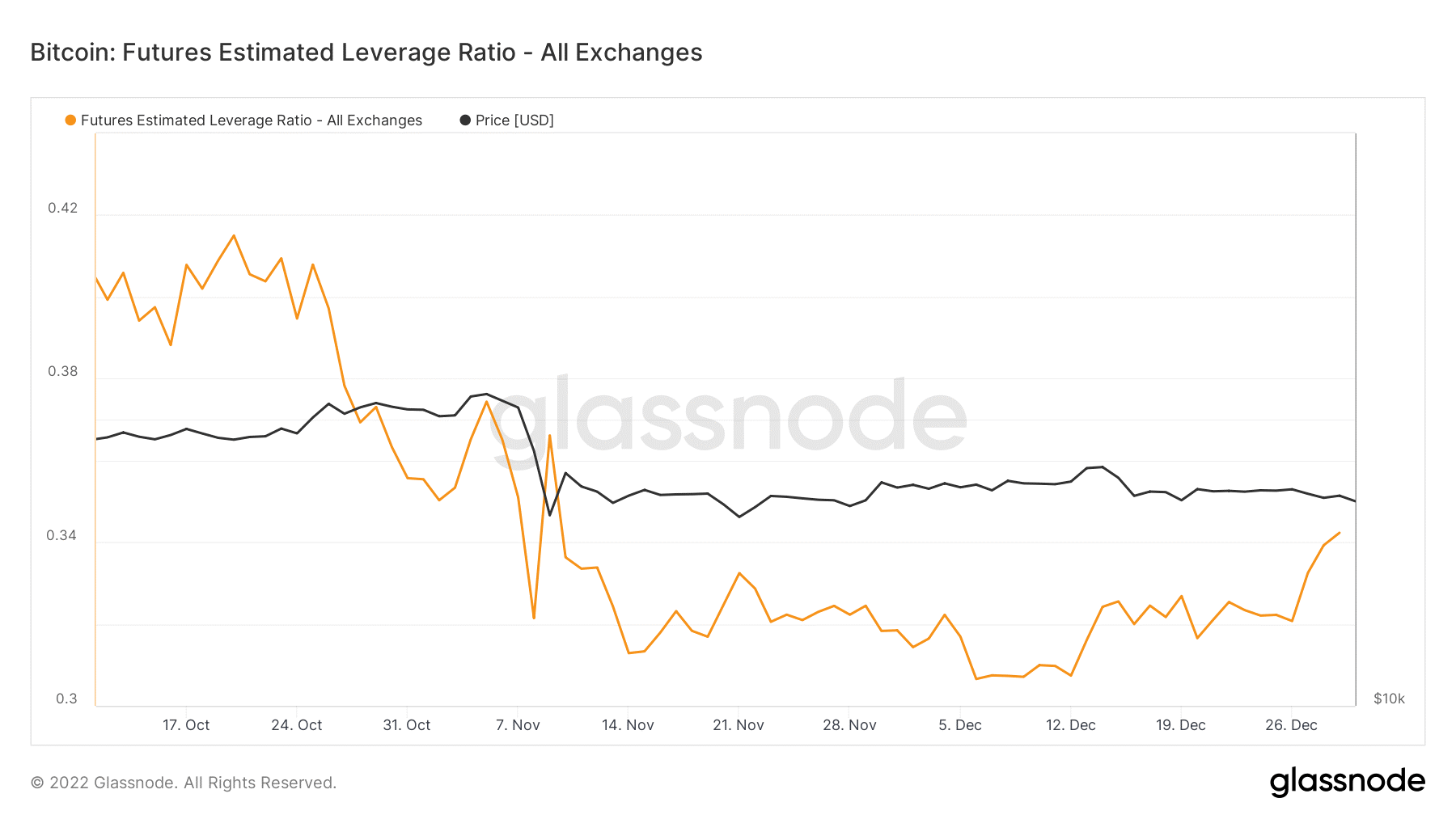 Tỷ lệ đòn bẩy ước tính đã giảm xuống mức thấp nhất là 0,3 vào ngày 5/12 sau khi FTX sụp đổ. Tuy nhiên, nó bắt đầu phục hồi nhanh chóng sau ngày 12/12. Tỷ lệ này gần như tăng khoảng 10% trong 20 ngày để đạt 0,34 vào ngày 30/12.