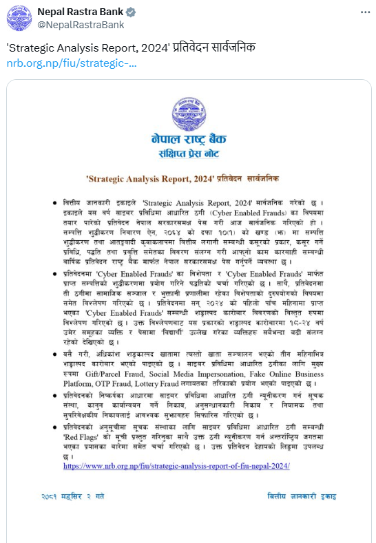 Quyết định cấm giao dịch tiền điện tử của Nepal đã vô tình tạo ra rào cản cho các nạn nhân của lừa đảo, khiến họ ngần ngại báo cáo các vụ việc vì sợ hậu quả pháp lý. Trong bối cảnh các vụ gian lận liên quan đến tiền điện tử tiếp tục gia tăng, FIU kêu gọi những biện pháp quản lý tốt hơn và nâng cao nhận thức để bảo vệ người dân khỏi rơi vào bẫy lừa đảo.