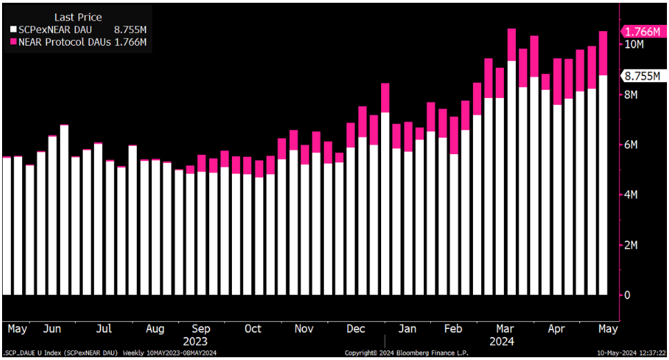 “Động lực người dùng hoạt động tuyệt đối: Số người dùng hoạt động hàng ngày của NEAR đã tăng từ 50.000 lên 1,76 triệu trong năm qua. Ex-NEAR đã tăng từ 5,4 triệu lên 8,75 triệu”.