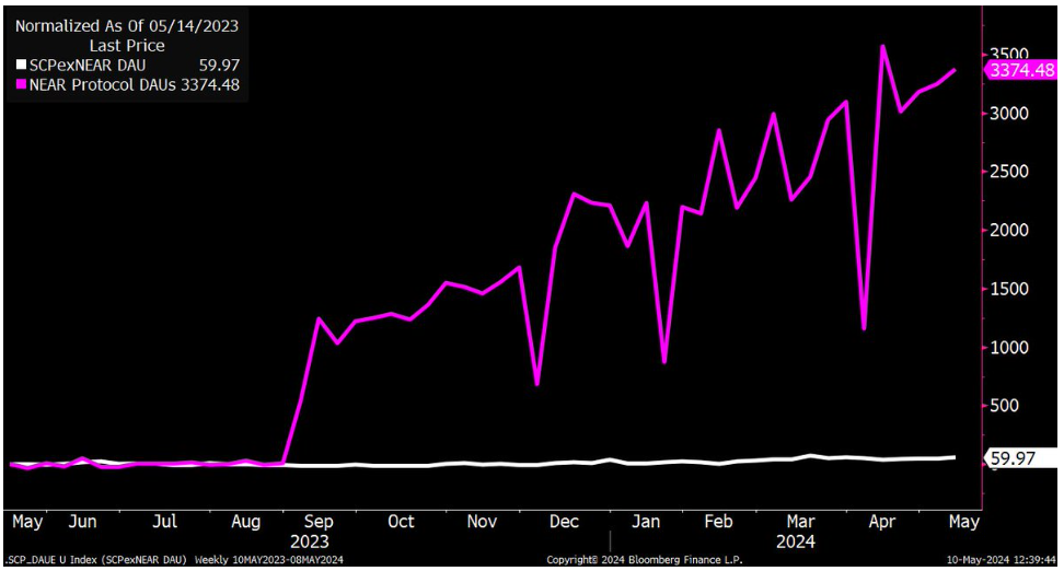 Theo nhà phân tích, NEAR cũng đang chứng kiến mức tăng trưởng người dùng hoạt động hàng ngày (DAU) trên mạng vượt trội so với các nền tảng hợp đồng thông minh khác, đây là một tín hiệu tăng giá khác.