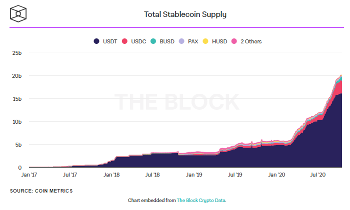 Theo dữ liệu do The Block Research tổng hợp, tổng nguồn cung của stablecoin đã vượt qua 20 tỷ đô la.