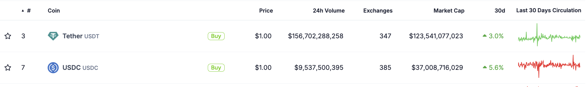 Vốn hóa thị trường của USDT và USDC | Nguồn: Coingecko